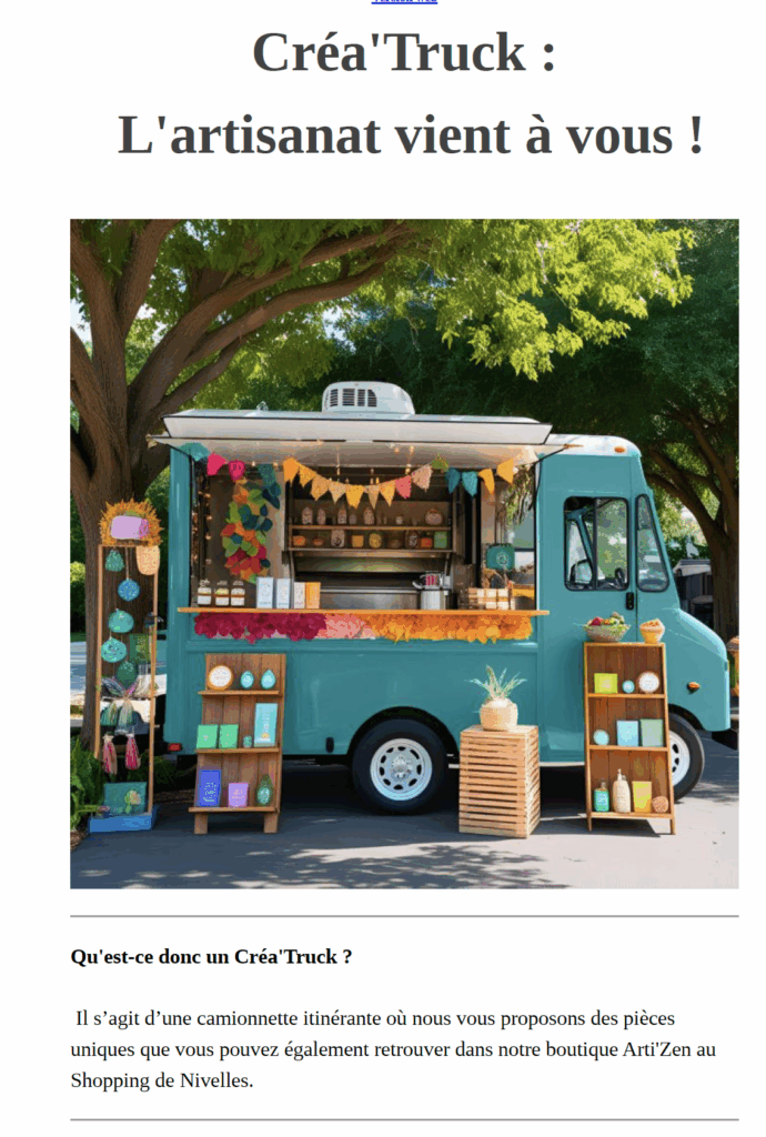 Pour l’exercice de la newsletter, j’ai décidé de rédiger une newsletter informative sur le Créa’Truck.