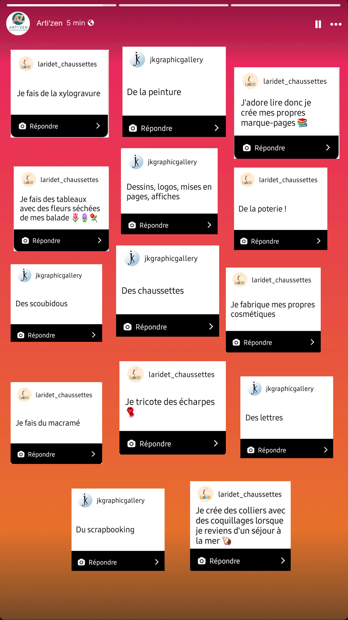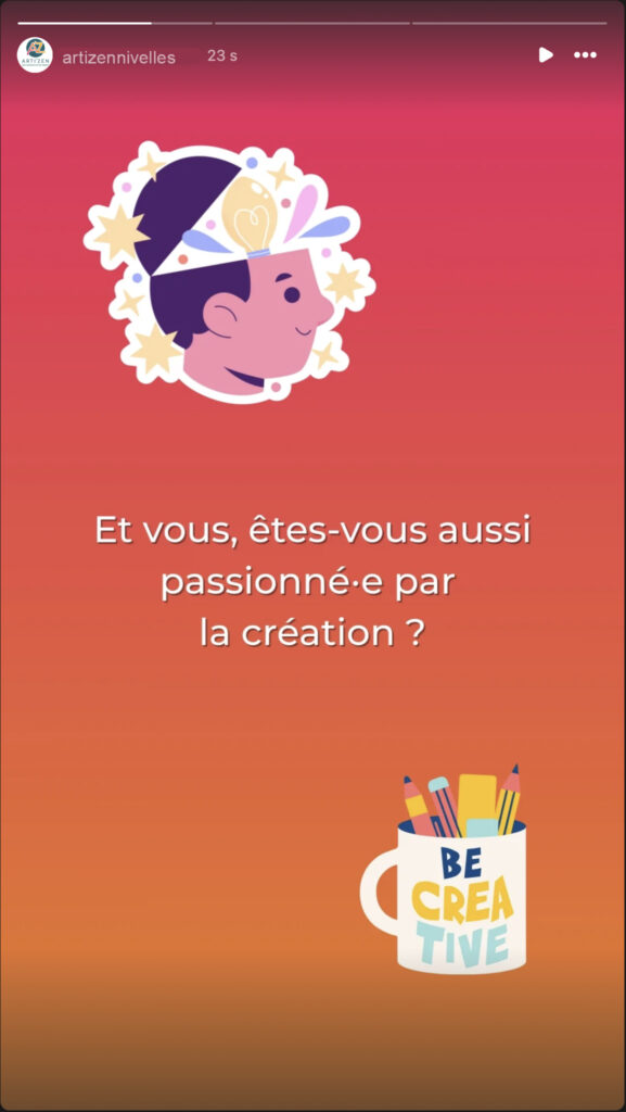 Méthode : parmi les différents types de stories, j’ai choisi de réaliser une story interactive de type question-réponse en deux parties. J’ai fait ce choix pour d’une part augmenter l’interaction sur ses réseaux et d’autre part pour renforcer l’engagement communautaire autour de la création.
