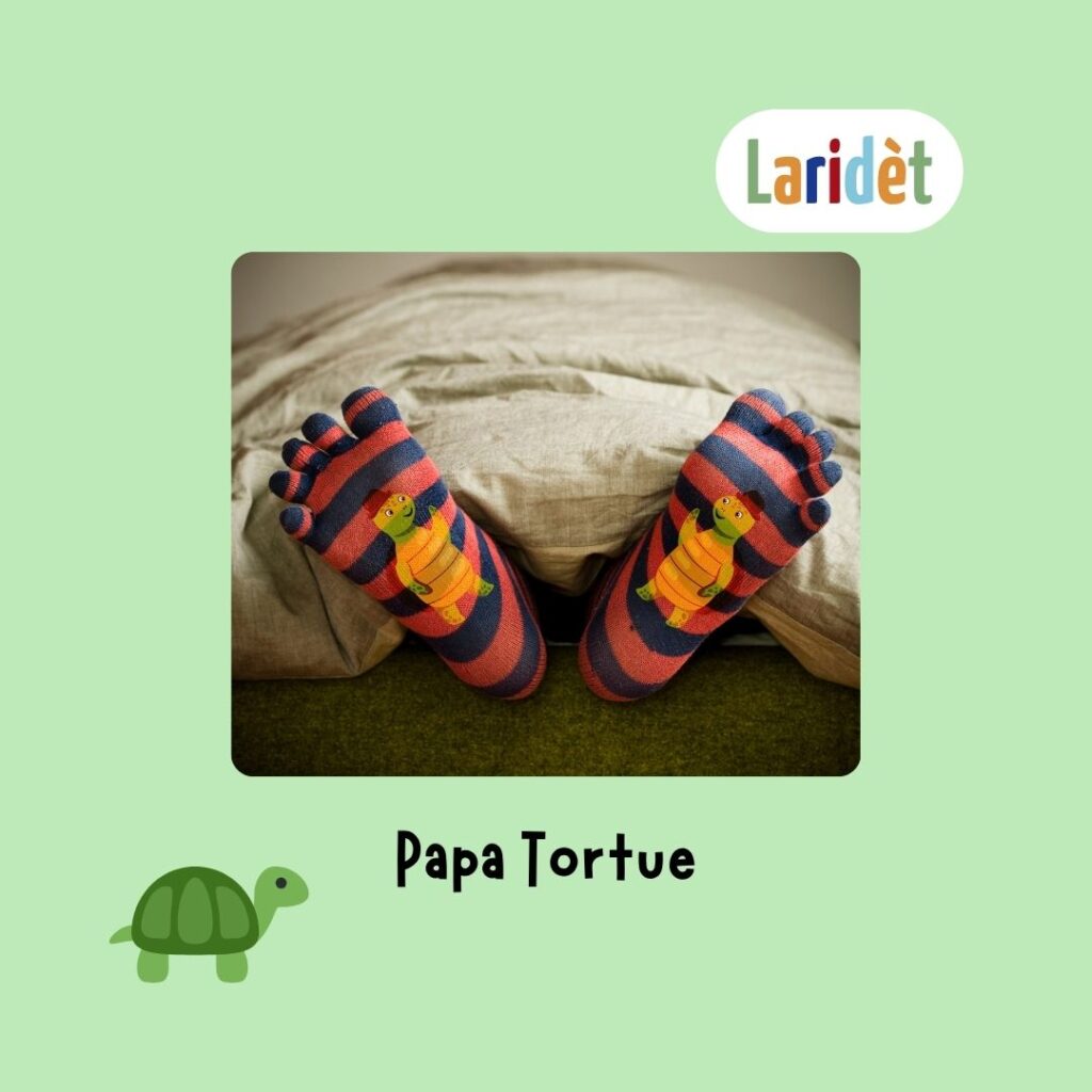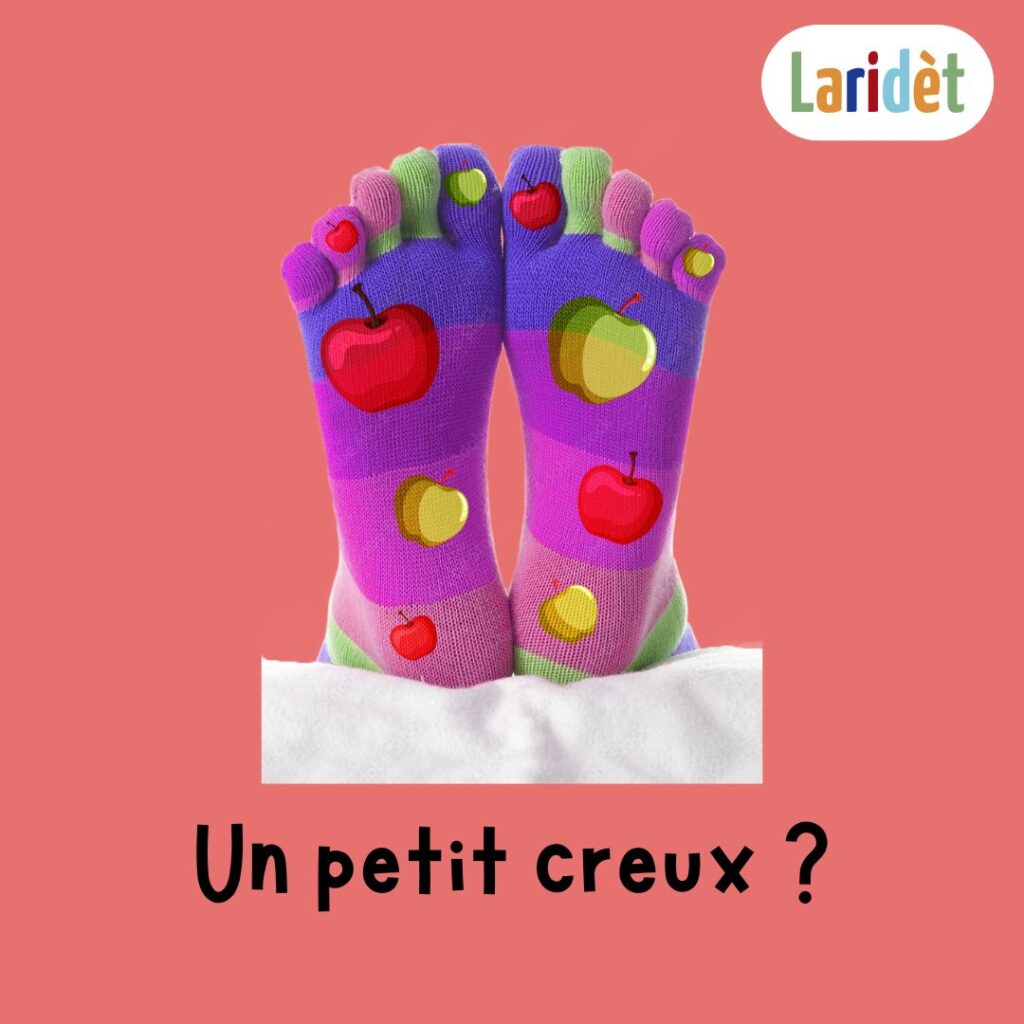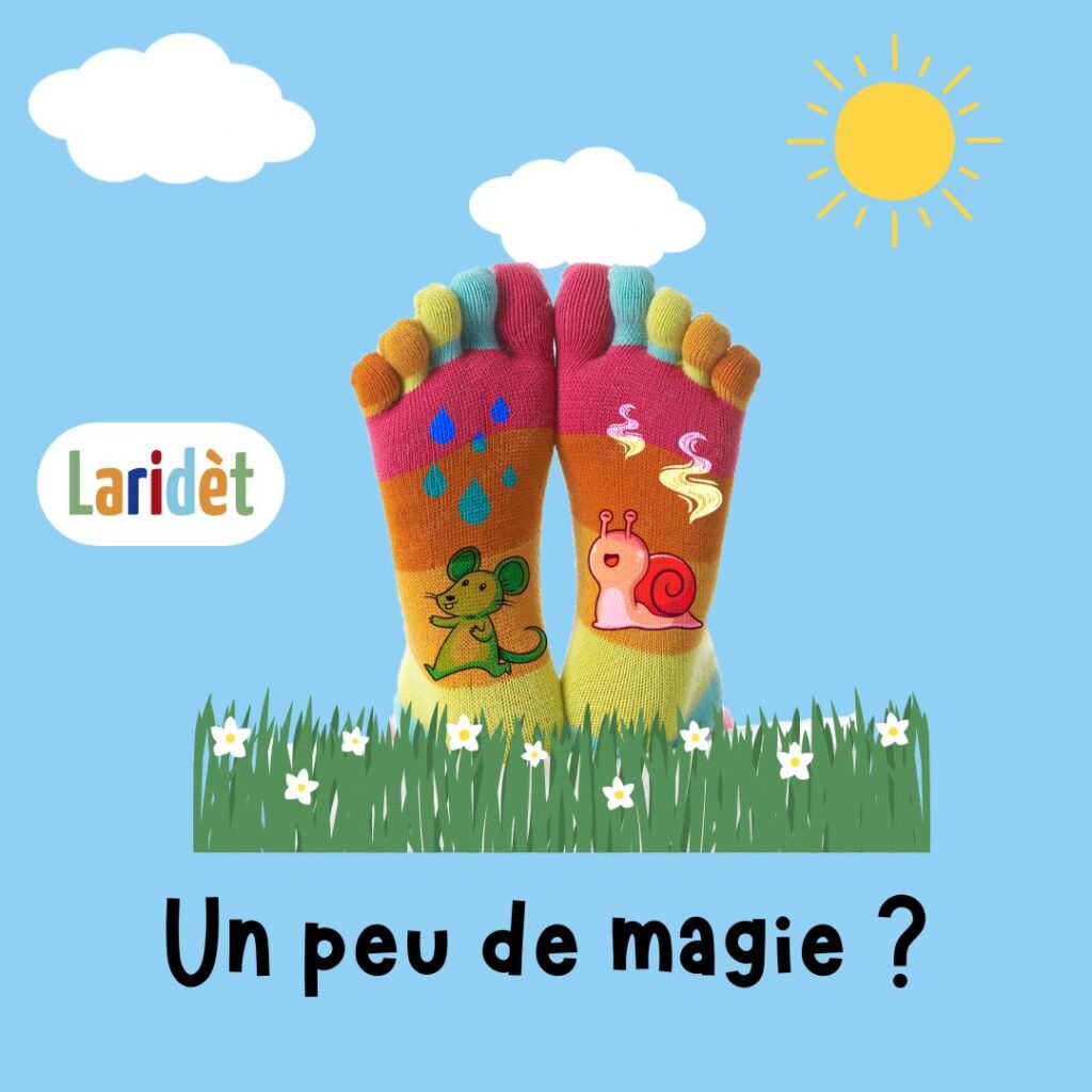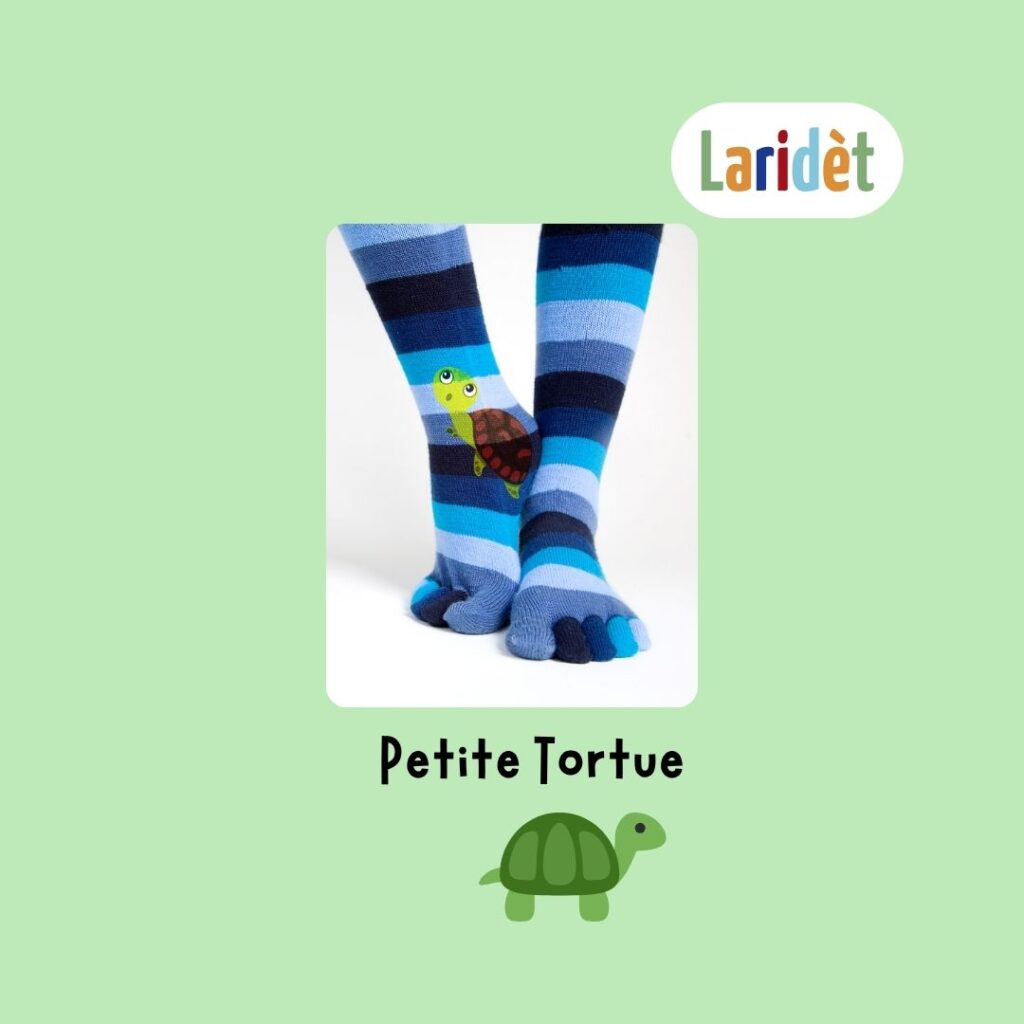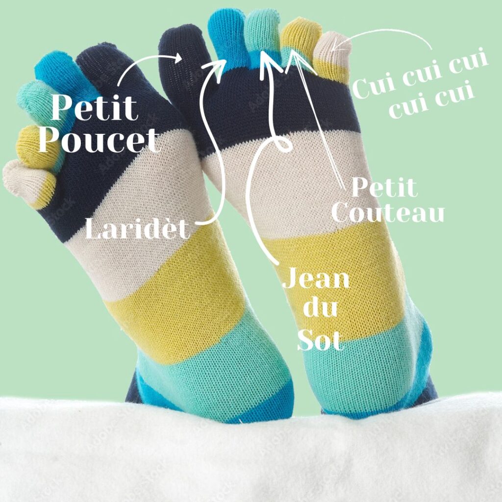 Méthode : Inspirée par mes neveux et nièces, j’ai imaginé cette marque autour d’une petite comptine peu connue, où chaque vers est récité en bougeant un orteil :
